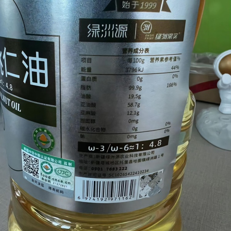 【中石油 新疆托里县】绿洲果实有机核桃仁油1.5L