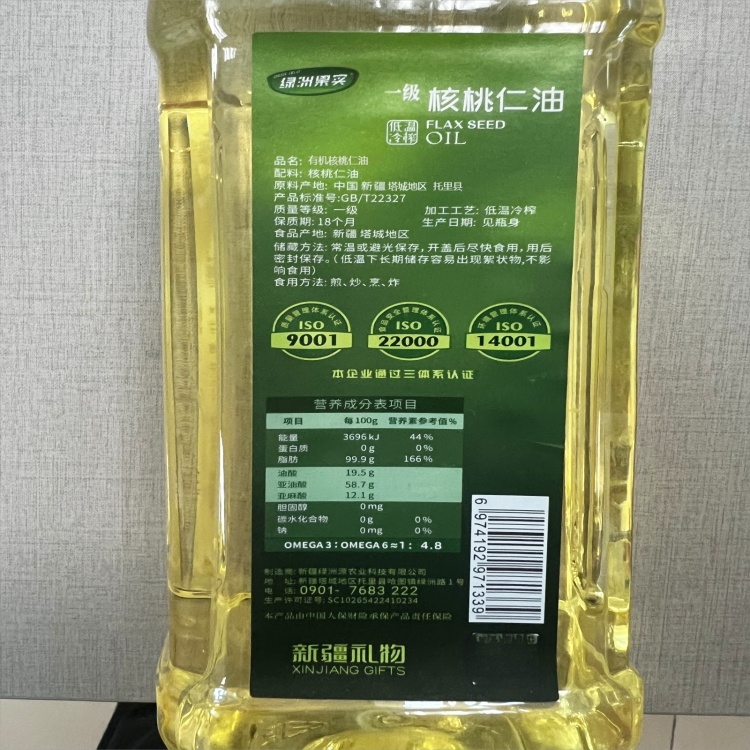 【中石油 新疆托里县】绿洲果实有机核桃仁油1L