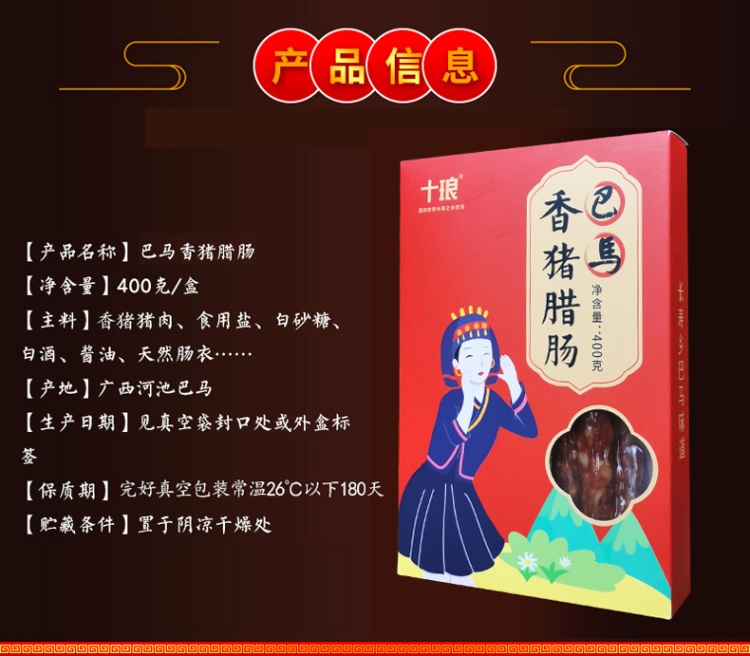【广西巴马县】巴马香猪腊肠400g/盒 广式风味