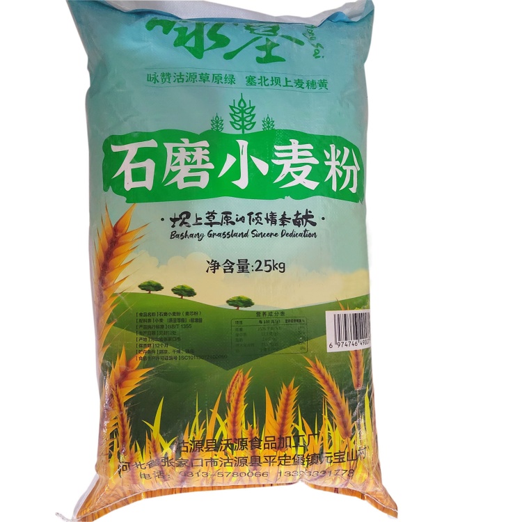 【河北沽源县】甄选咏塞石磨小麦粉25kg袋食堂家用