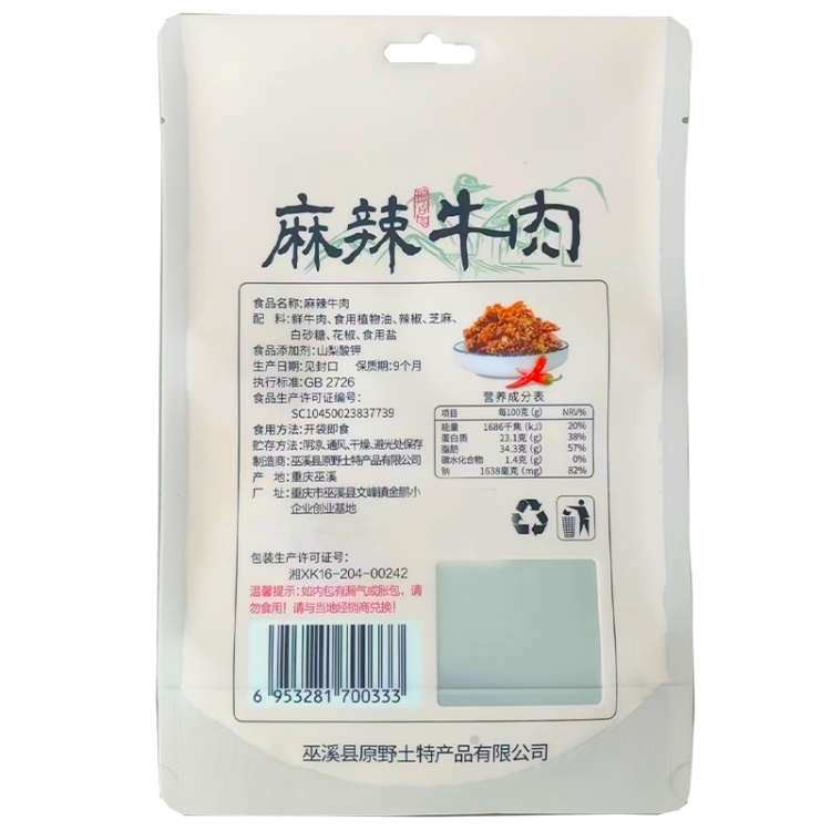 【重庆巫溪县】牛肉干100g 牛肉干休闲零食牛肉干手撕 手工牛肉干麻辣