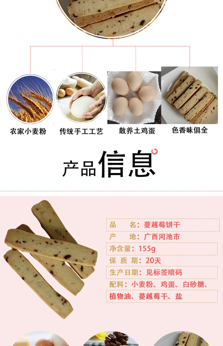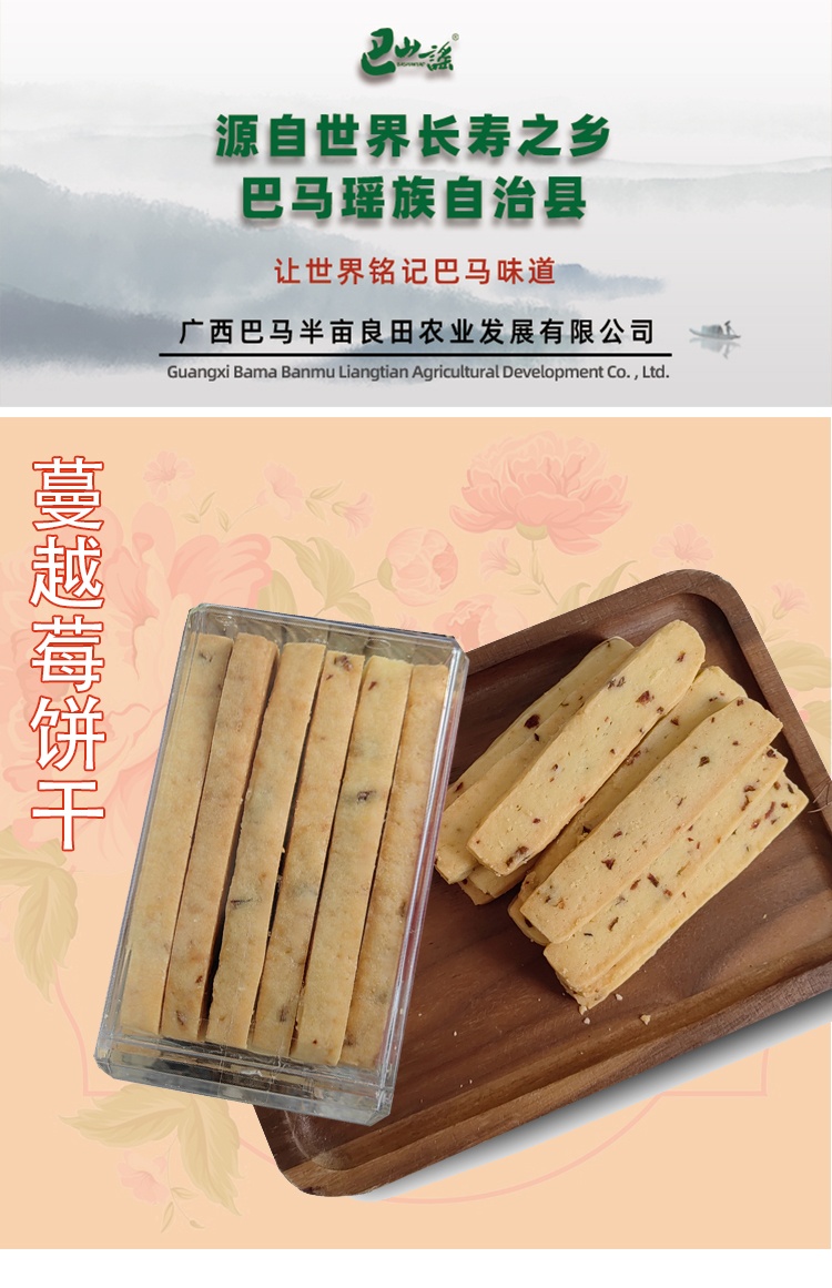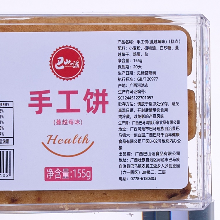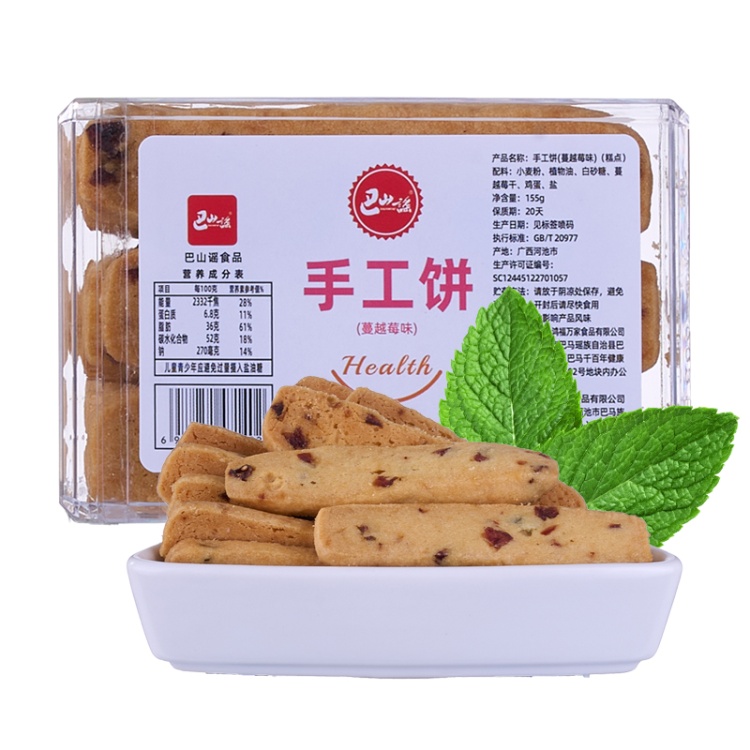 【广西巴马县】巴山谣牌蔓越莓味饼干155g*5盒装长寿乡休闲小吃