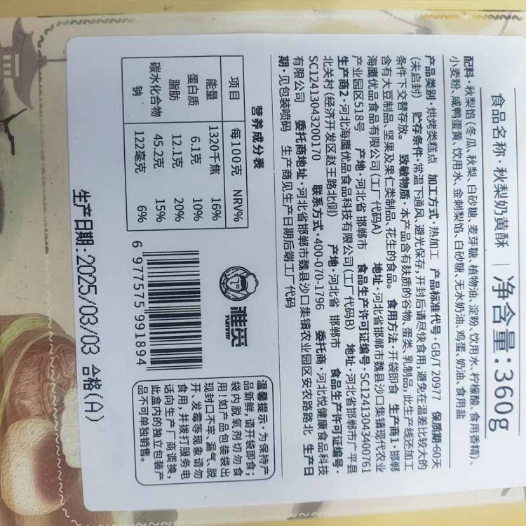 【河北魏县】雅觅秋梨奶黄酥360g雪媚娘休闲糕点