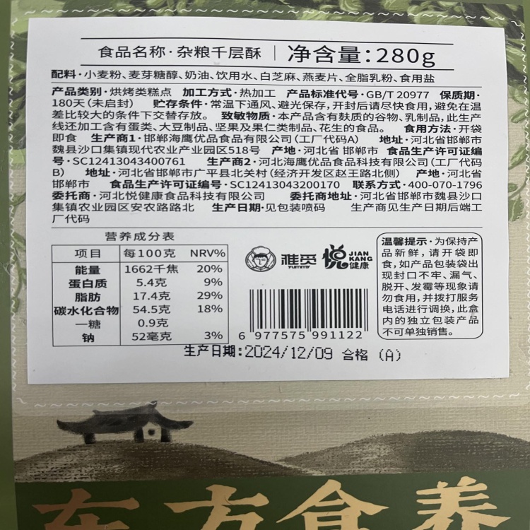 【河北魏县】雅觅杂粮千层酥280g