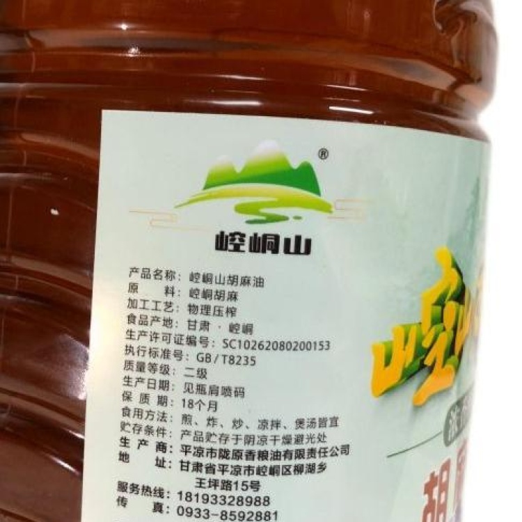【甘肃崆峒区】崆峒山浓香鲜榨纯胡麻油(亚麻籽油)5L/瓶