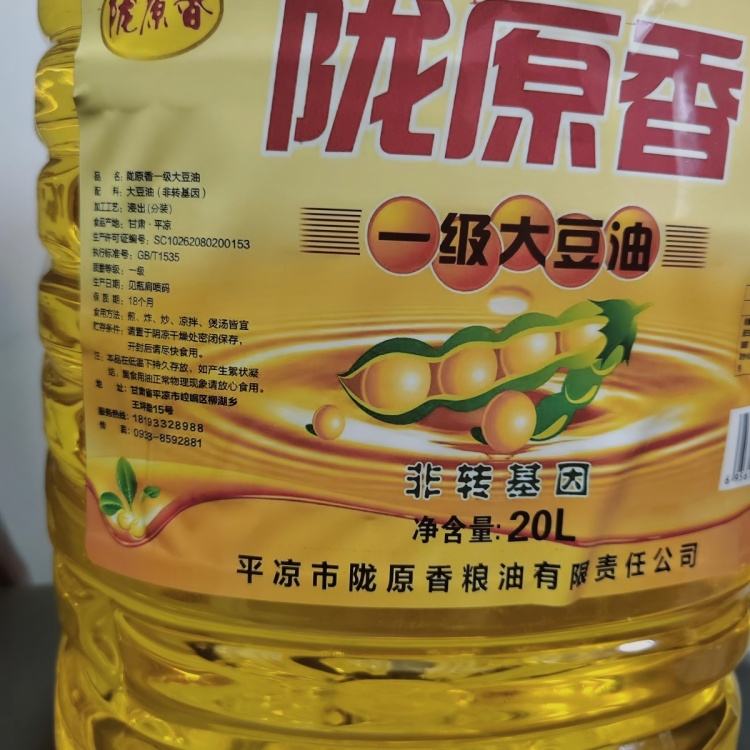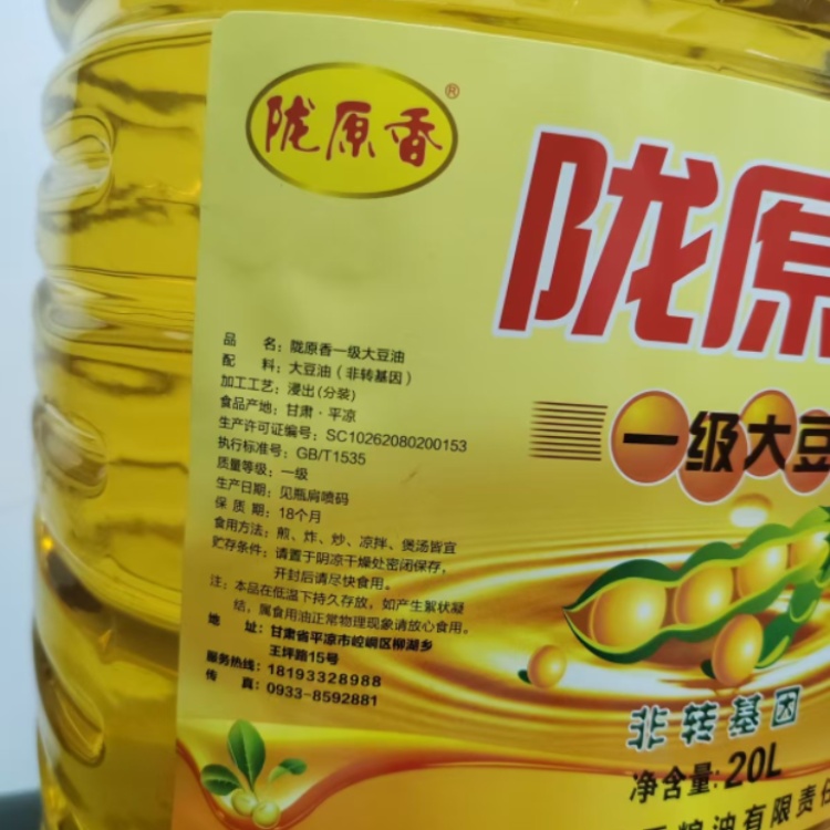 【甘肃崆峒区】陇原香非转基因一级大豆油20L/桶