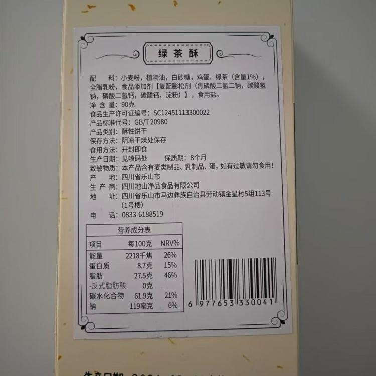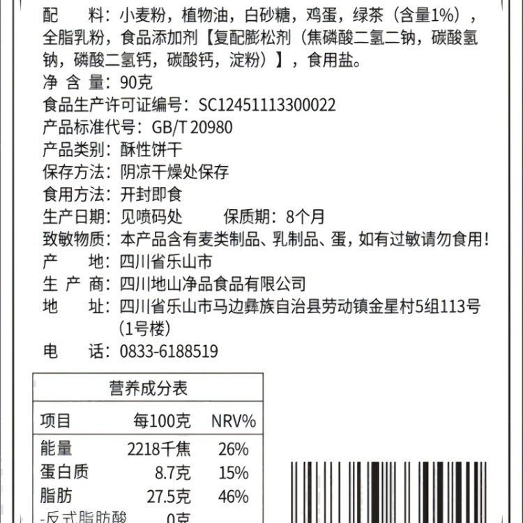 【四川马边彝族自治县】绿茶酥茶点传统中式点心办公室小零食酥性饼干90g/盒