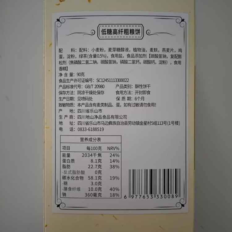 【四川马边彝族自治县】地山净品低糖高纤饼茶点传统中式点心办公室小零食90g
