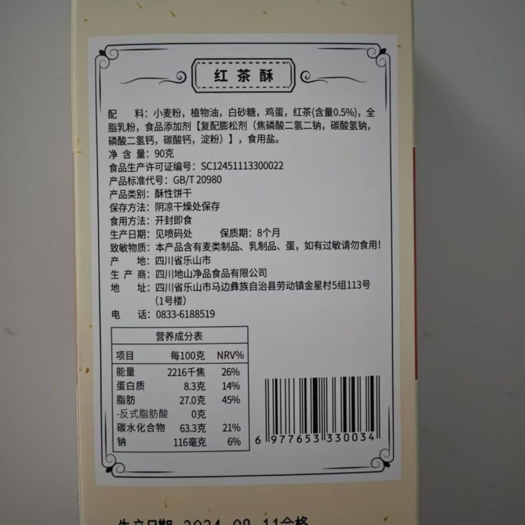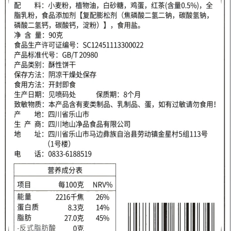 【四川马边彝族自治县】地山净品红茶酥茶点传统点心办公室休闲零食90g/盒