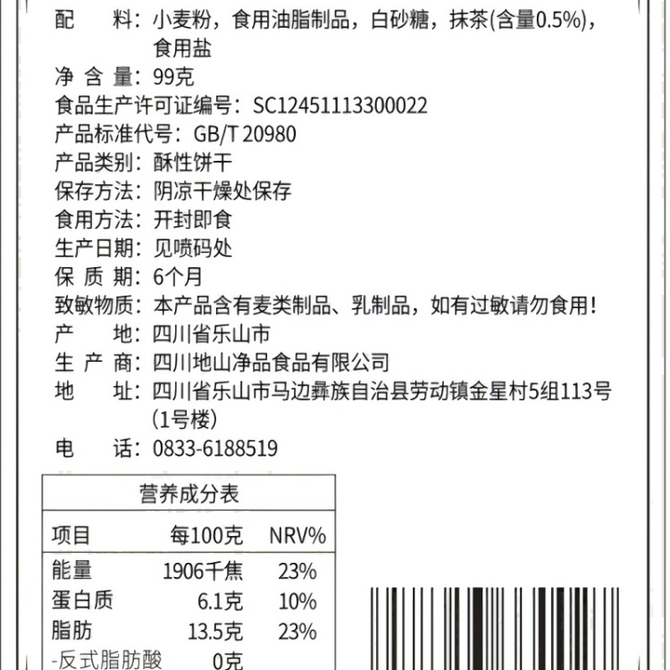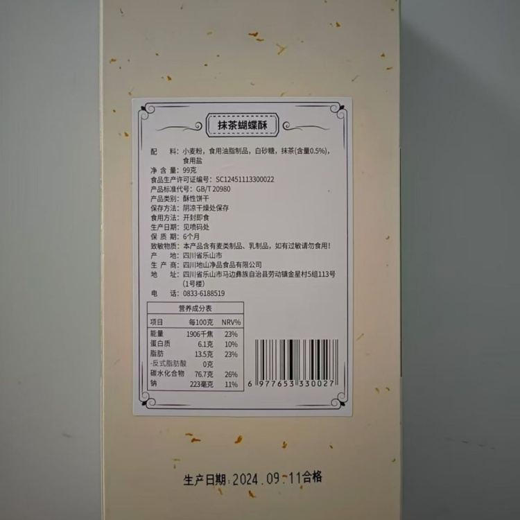 【四川马边彝族自治县】地山净品抹茶蝴蝶酥茶点传统中式点心办公室小零食99g