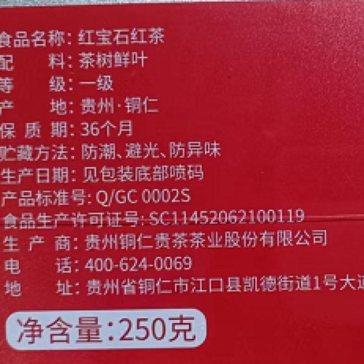 【贵州江口县】贵茶红宝石一级铁盒250克