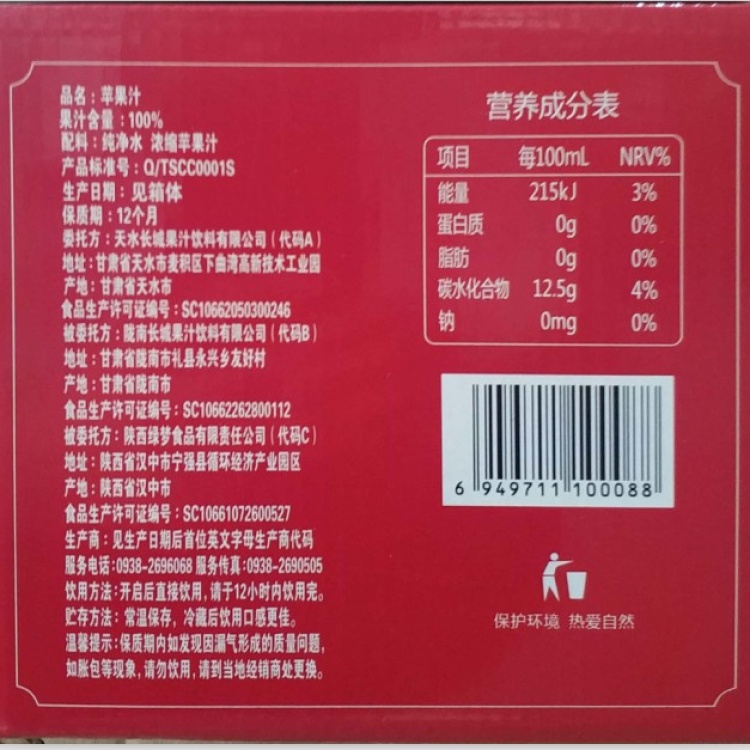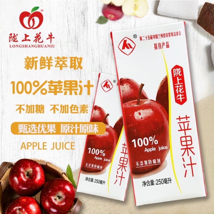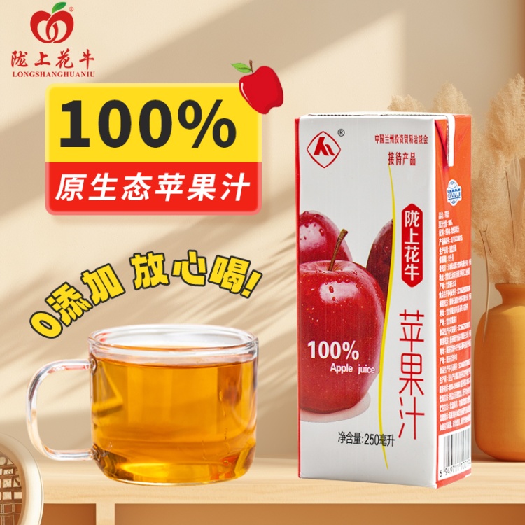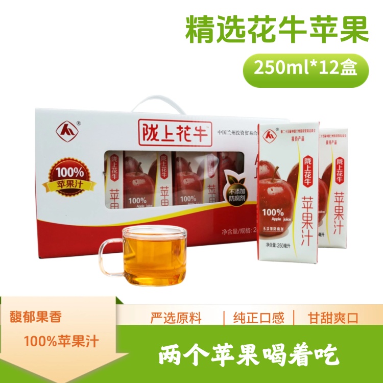 【甘肃麦积区】陇上花牛百分百苹果汁每盒250ml每箱12盒饮品饮料
