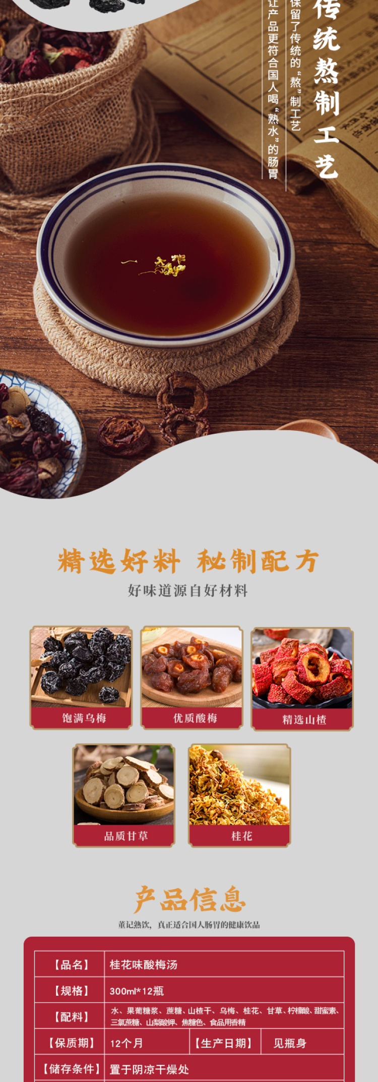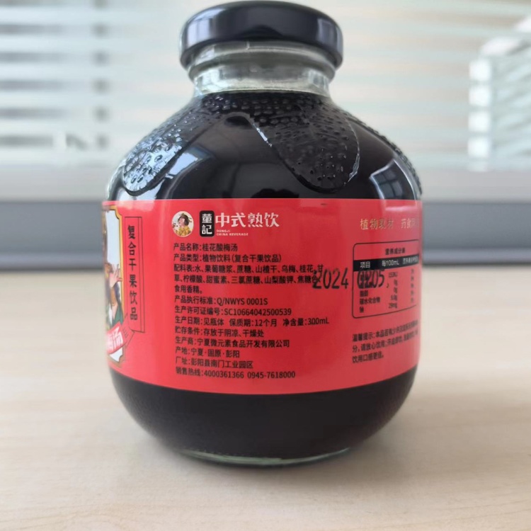 【宁夏彭阳县】董记酸梅汤桂花味300ml12瓶古法熬煮工艺复合干果饮品