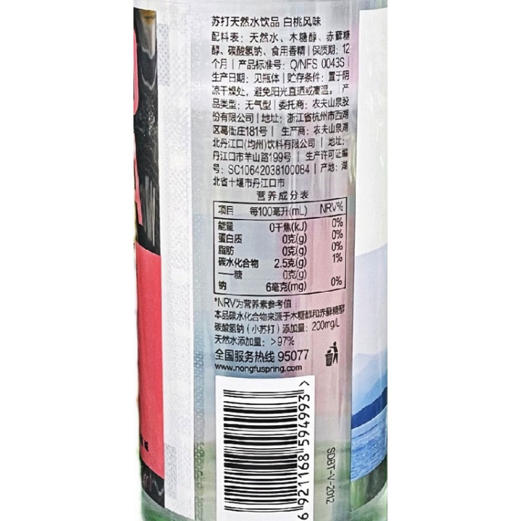 【湖北丹江口市】农夫山泉苏打天然水饮品白桃味单瓶410ml(15瓶每箱)