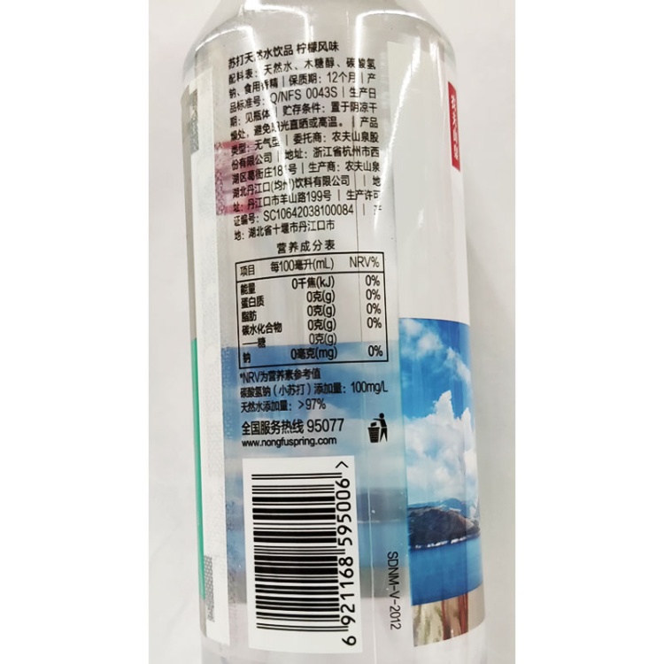 【湖北丹江口市】农夫山泉苏打天然水饮品柠檬味每瓶410ml(15瓶每箱)