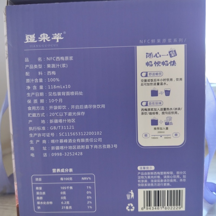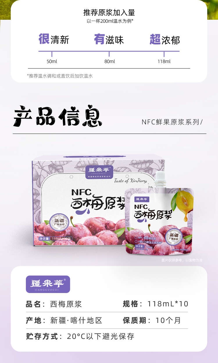 【新疆疏附县】NFC西梅原浆118mlx10袋