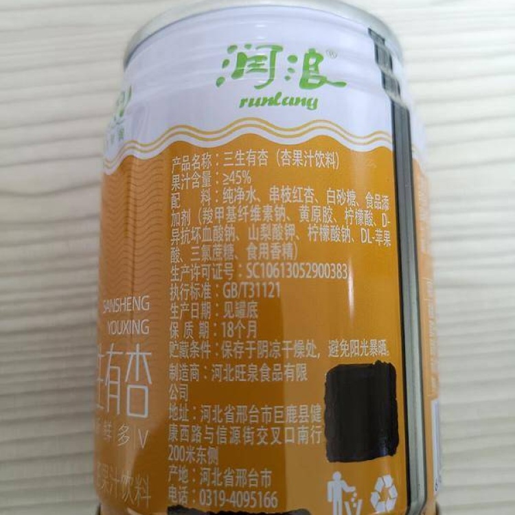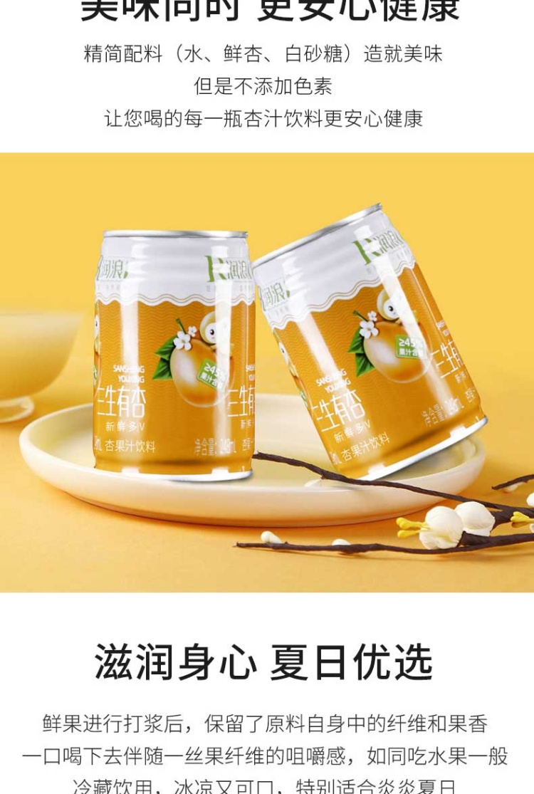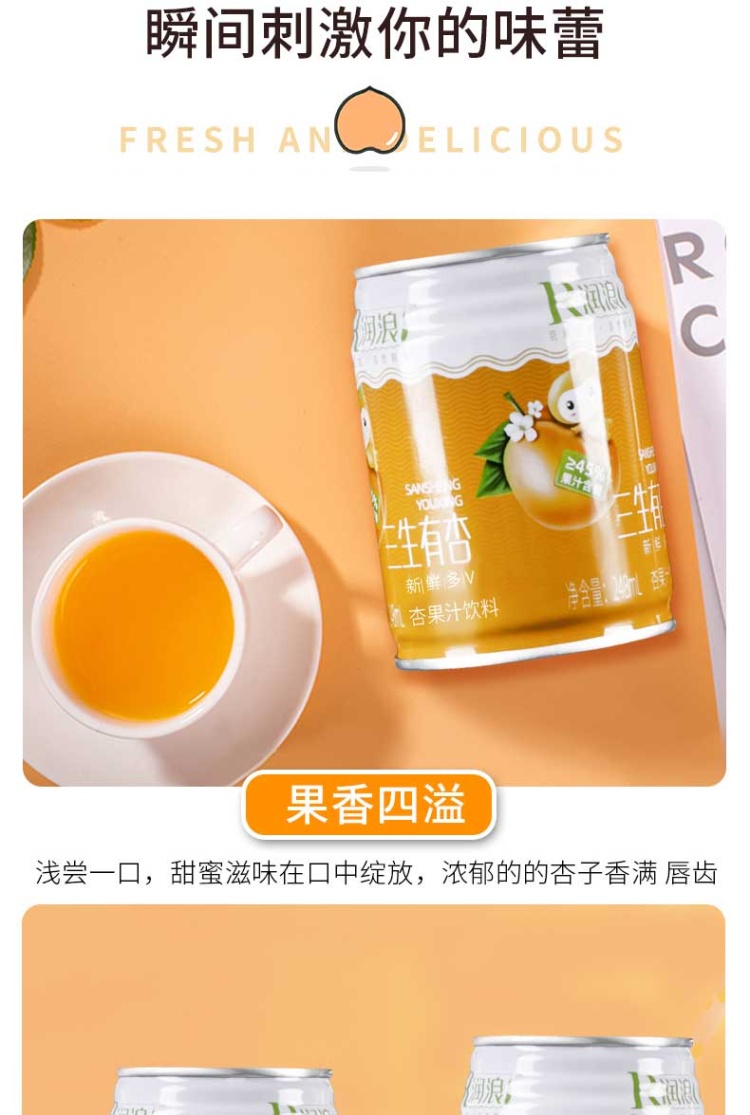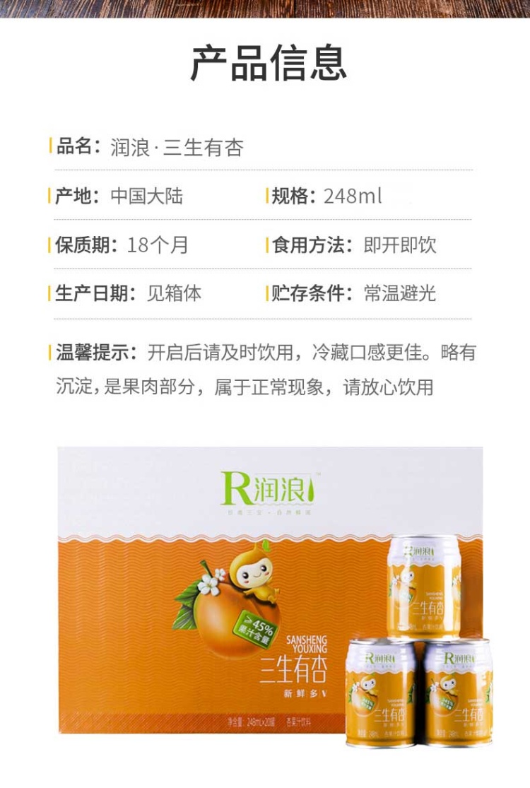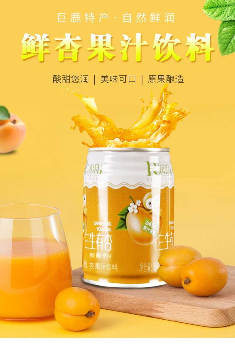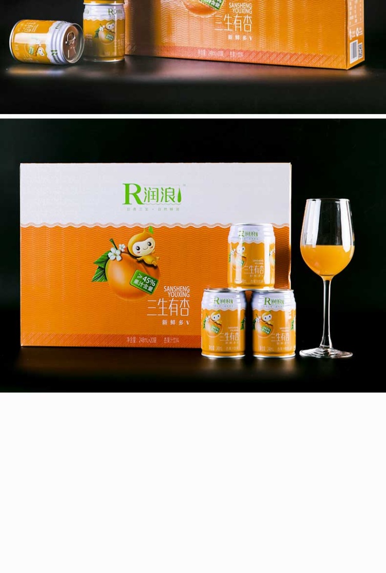 【河北巨鹿县】润浪三生有杏果汁饮料248ml*20罐/箱 饮料包邮