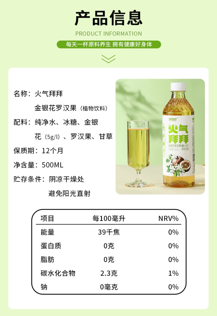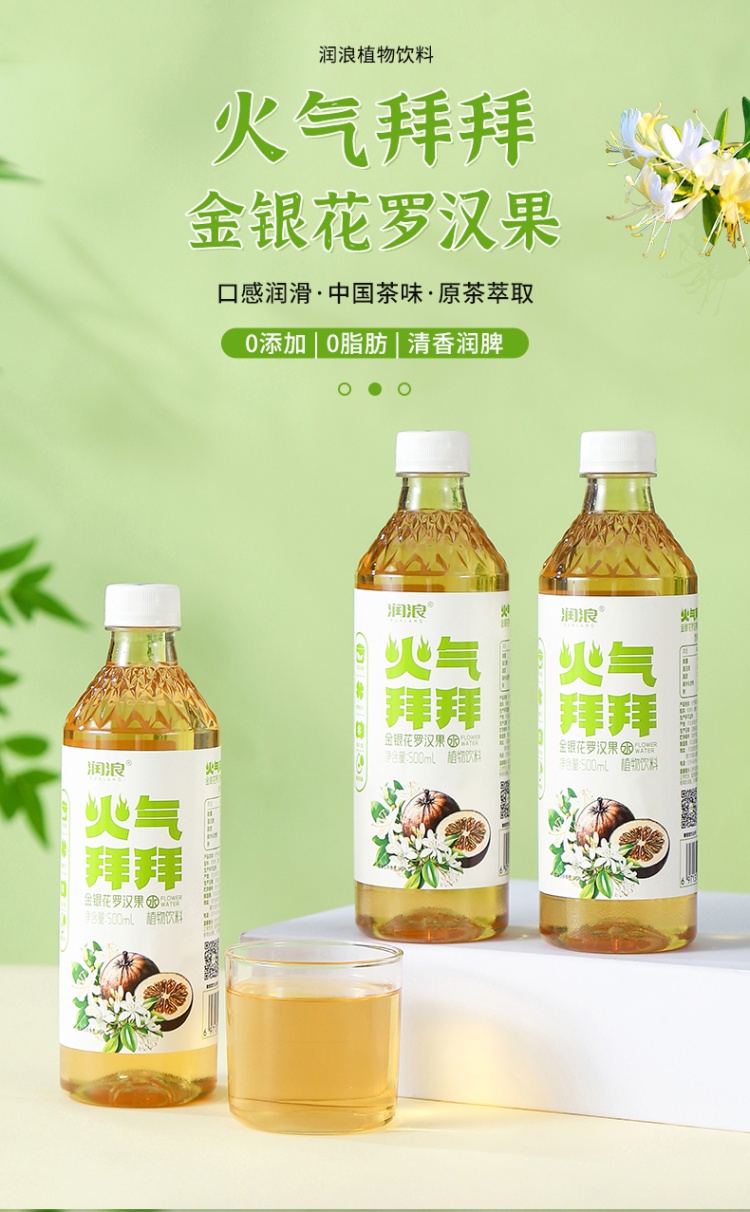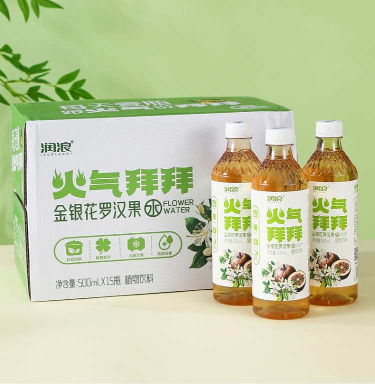 【河北巨鹿县】润浪火气拜拜金银花罗汉果500ml整箱15瓶纯植物饮品