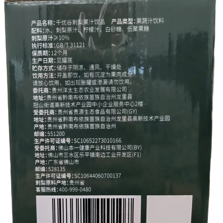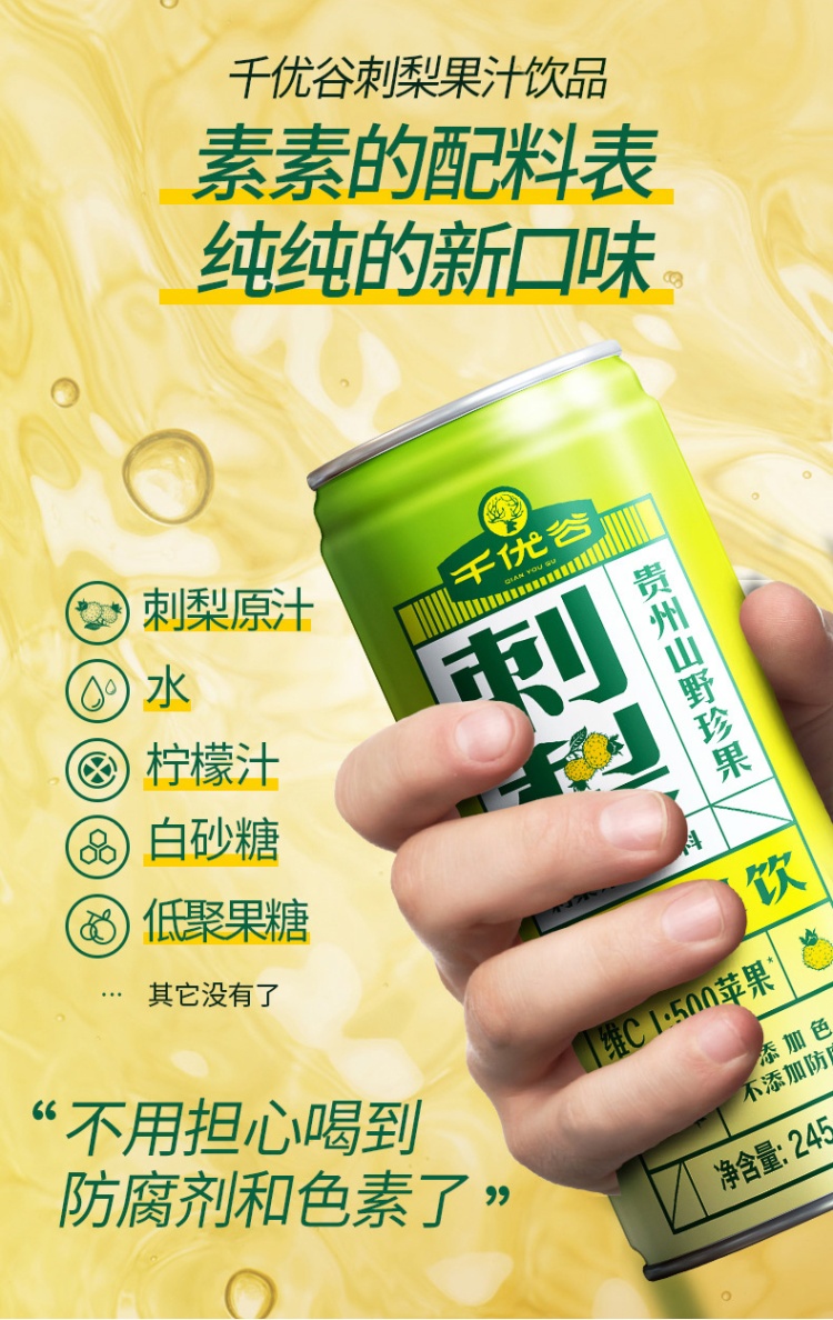【贵州龙里县】千优谷刺梨果汁饮品245mlX6罐