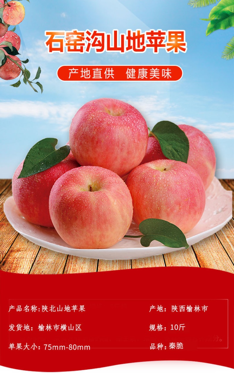【陕西横山区】陕北山地苹果秦脆10斤(预售10月中旬发)