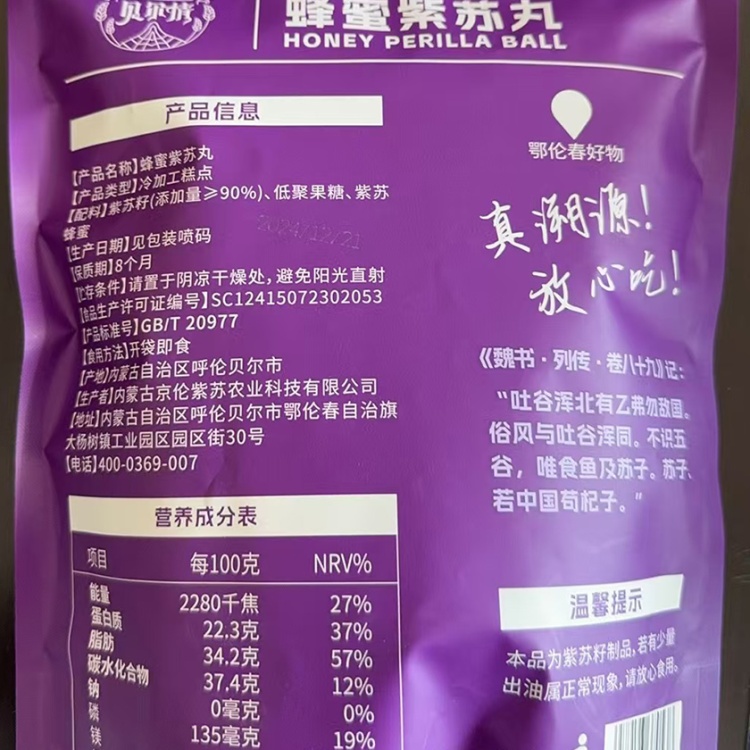 【内蒙古鄂伦春自治旗】贝尔情蜂蜜紫苏丸125g