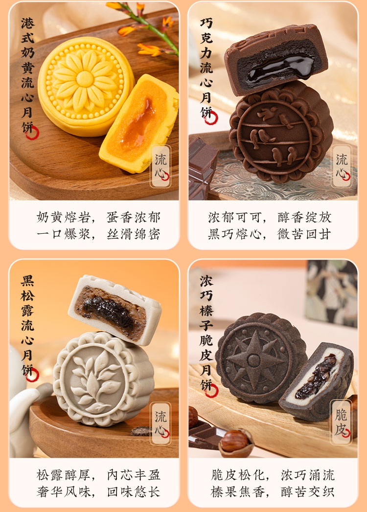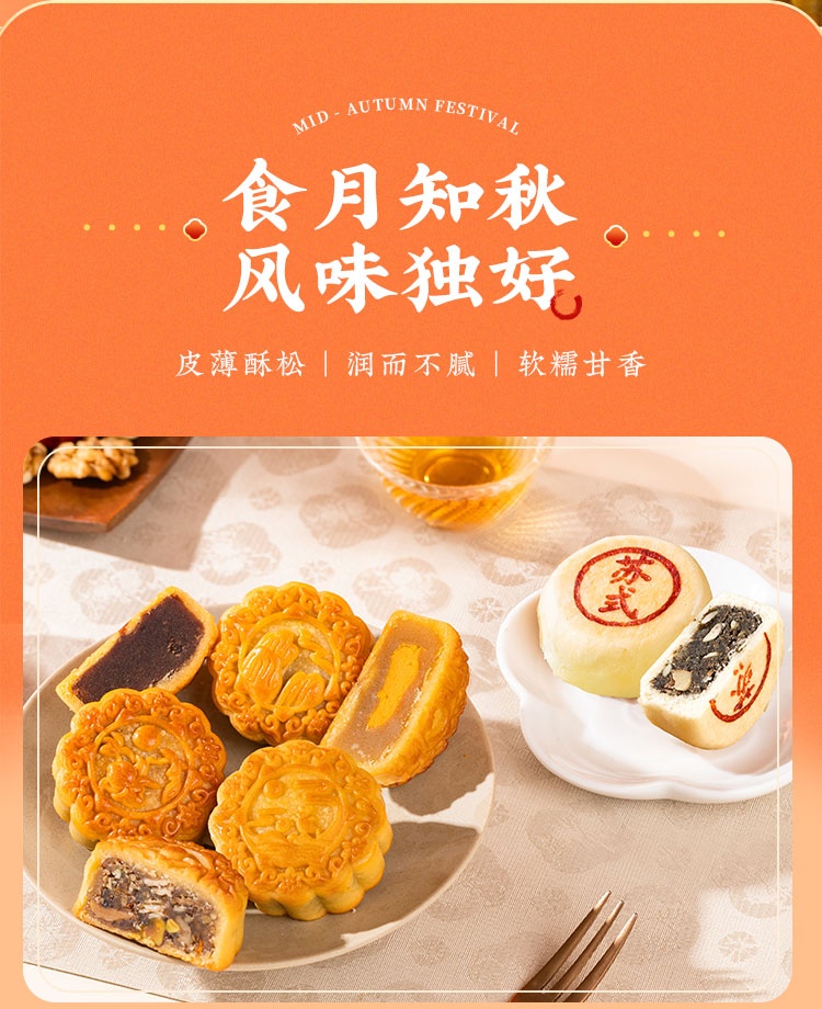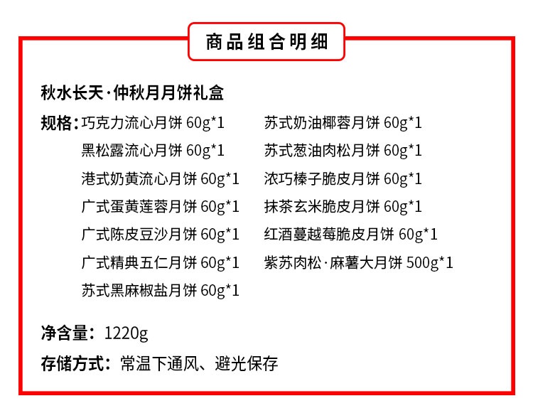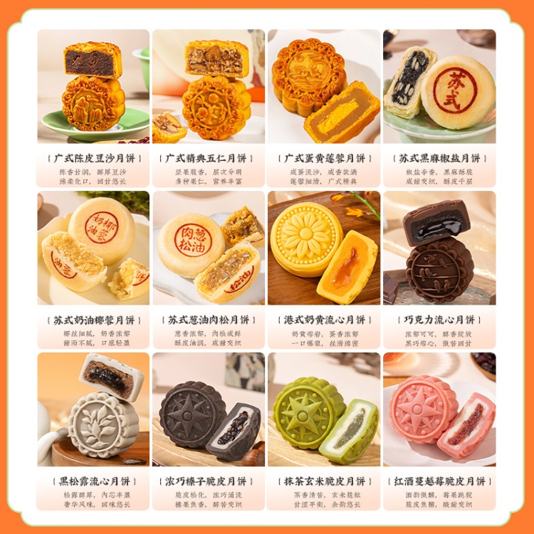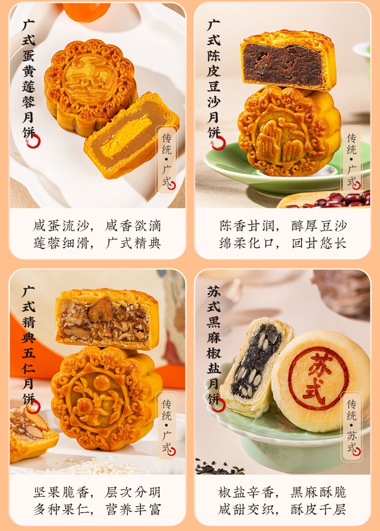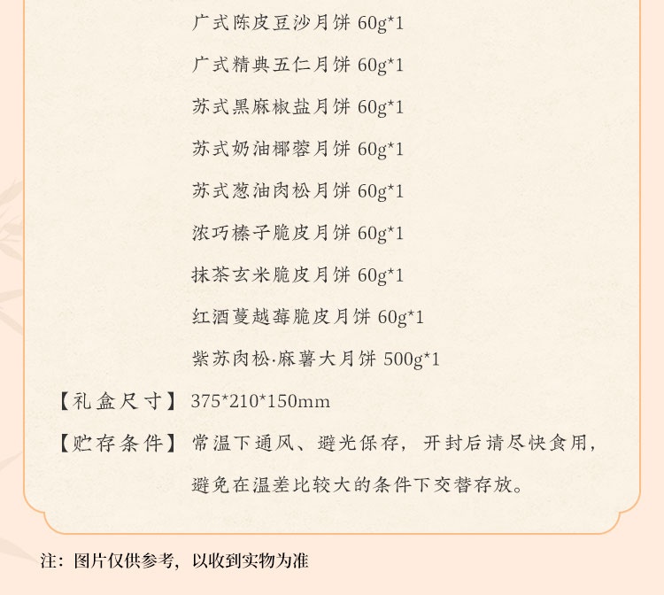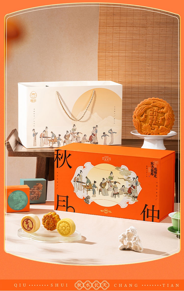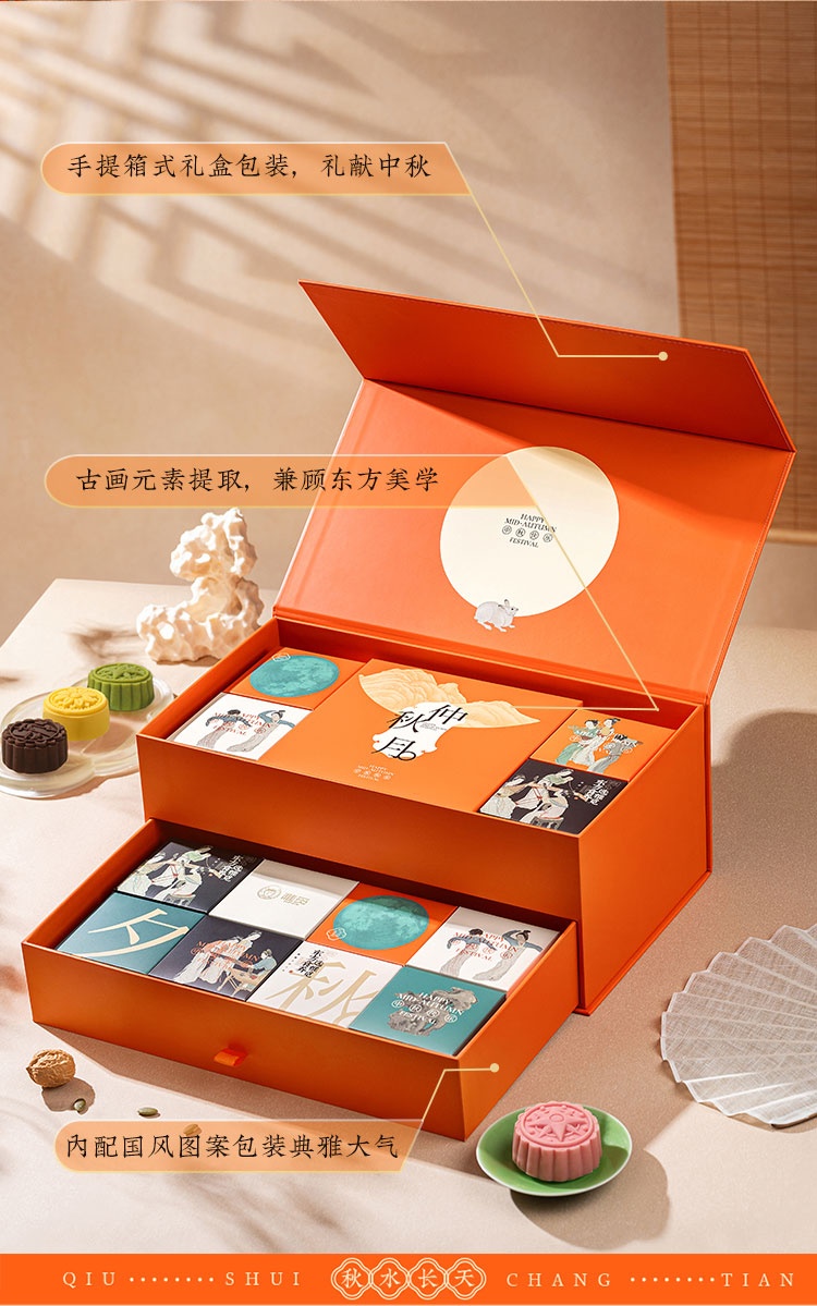 【河北魏县】秋水长天·仲秋月月饼礼盒(流心60g3枚+广式60g*3枚+苏式60g*3枚+脆皮60g*3枚+大月饼1枚)