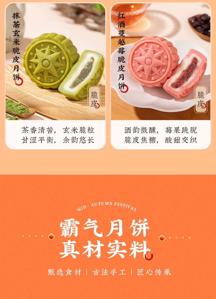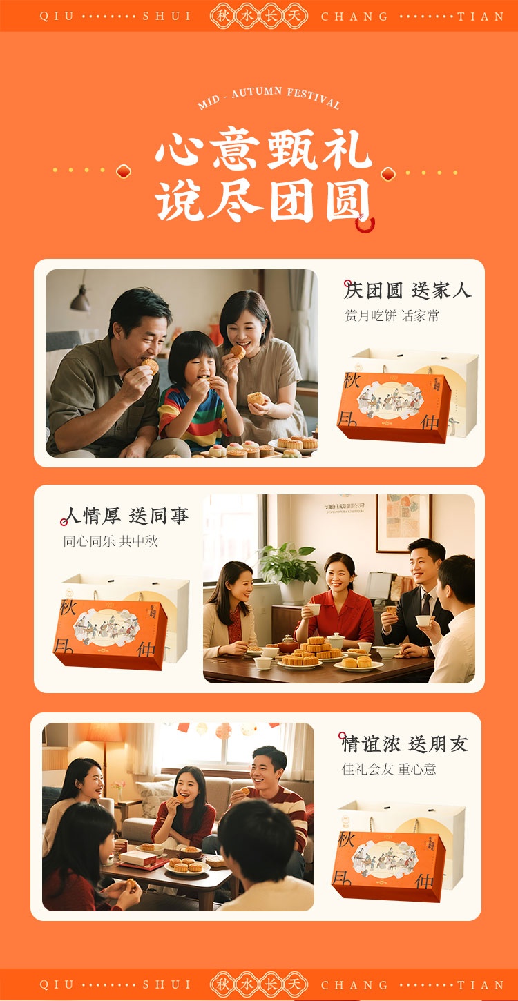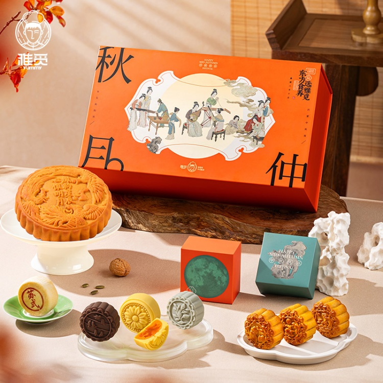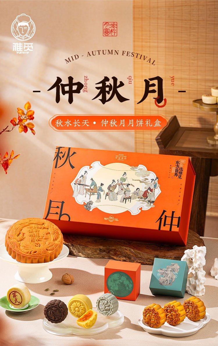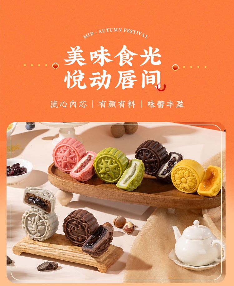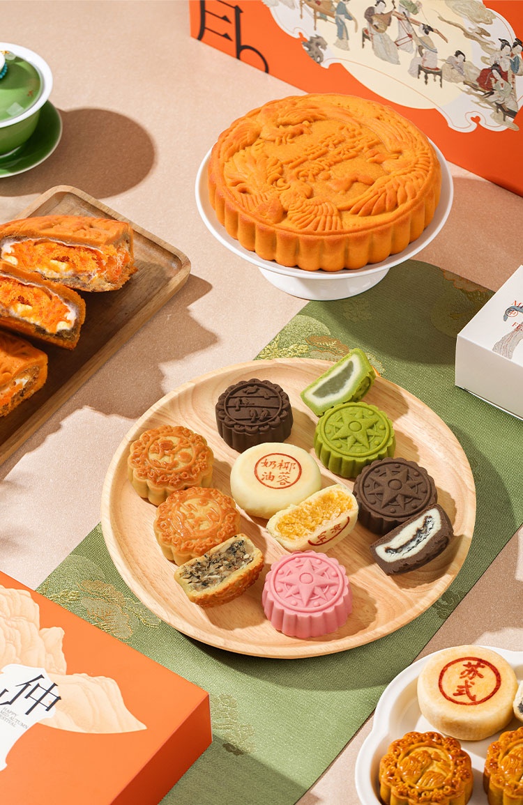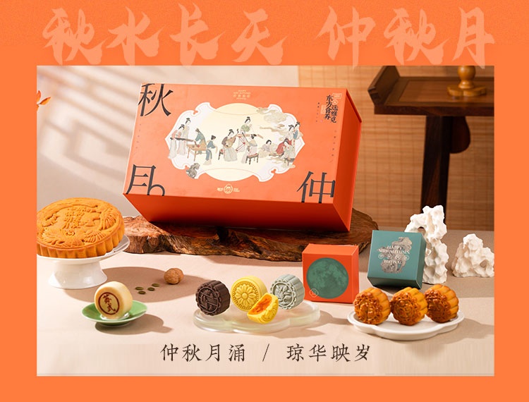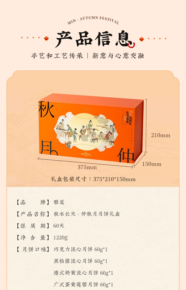 【河北魏县】秋水长天·仲秋月月饼礼盒(流心60g3枚+广式60g*3枚+苏式60g*3枚+脆皮60g*3枚+大月饼1枚)