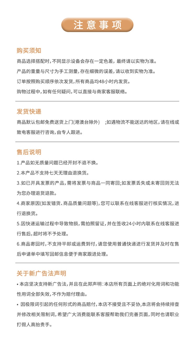 商品详情订购说明售后保障