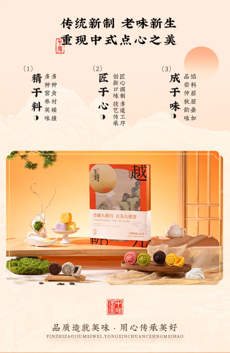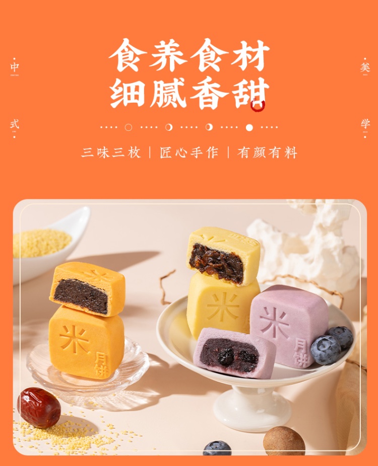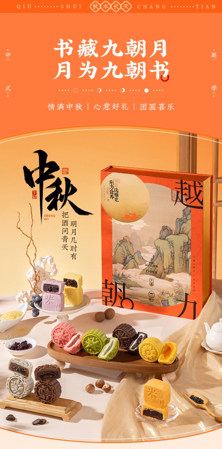 【河北魏县】秋水长天·越九朝月饼礼盒(流心60g3枚+米皮60g*3枚+脆皮60g*3枚)