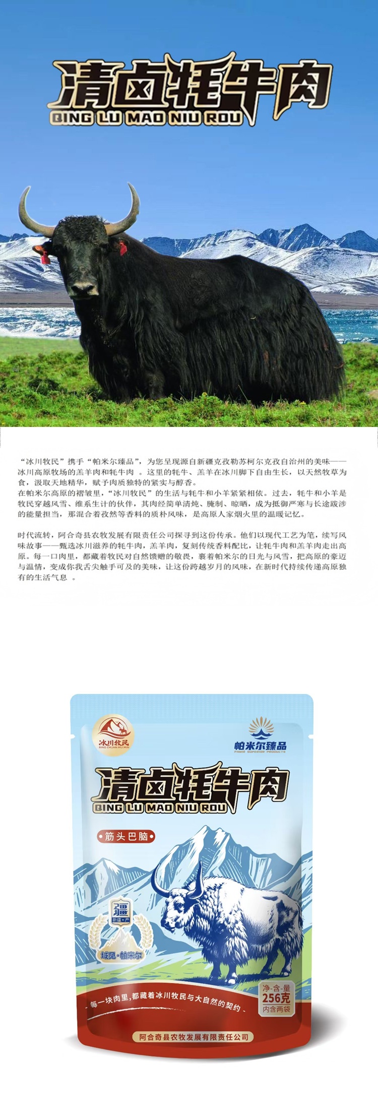 【新疆阿合奇县】冰川牧民清卤牦牛肉筋头巴脑256克/袋