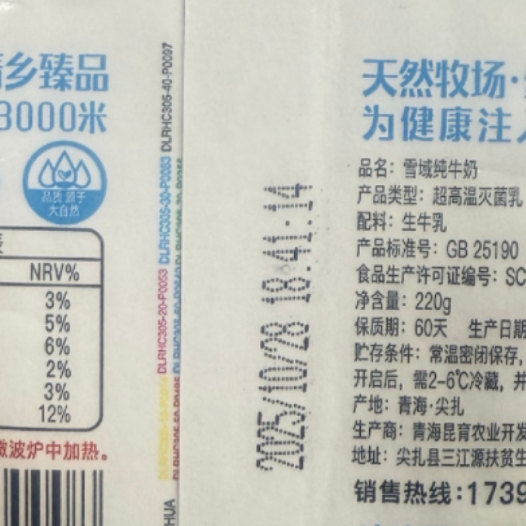 【青海尖扎县】雪域纯牛奶220毫升×16盒/件(保质期60天)