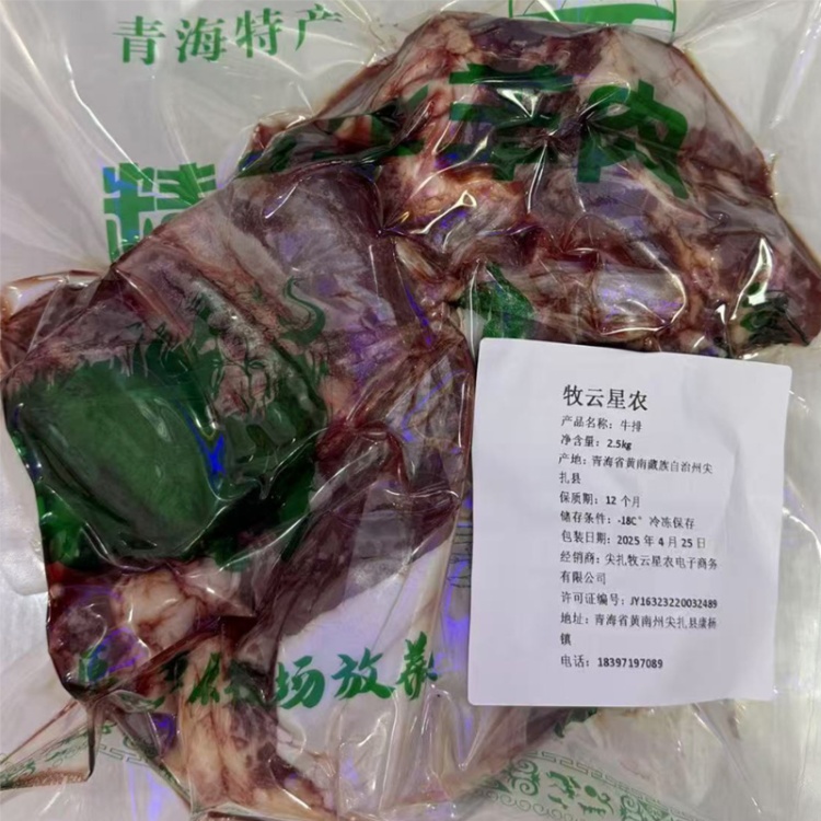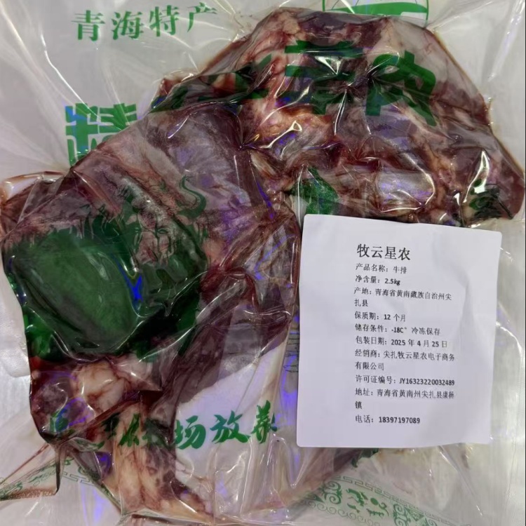 【青海尖扎县】青藏高原牧云星农牦牛牛排2.5公斤【带骨】