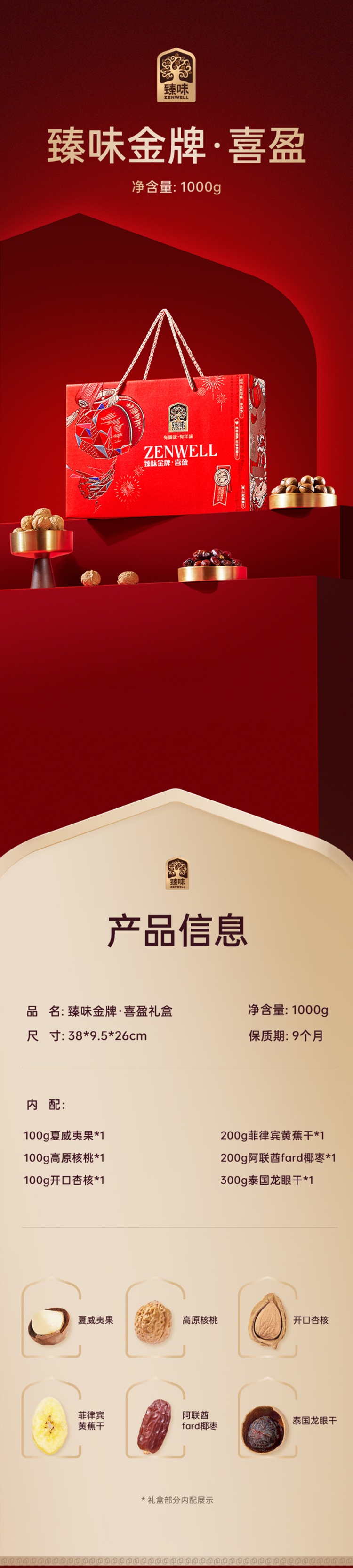 【河南省上蔡县】【臻味】喜盈坚果礼盒1000g/盒休闲食品组合干果包邮