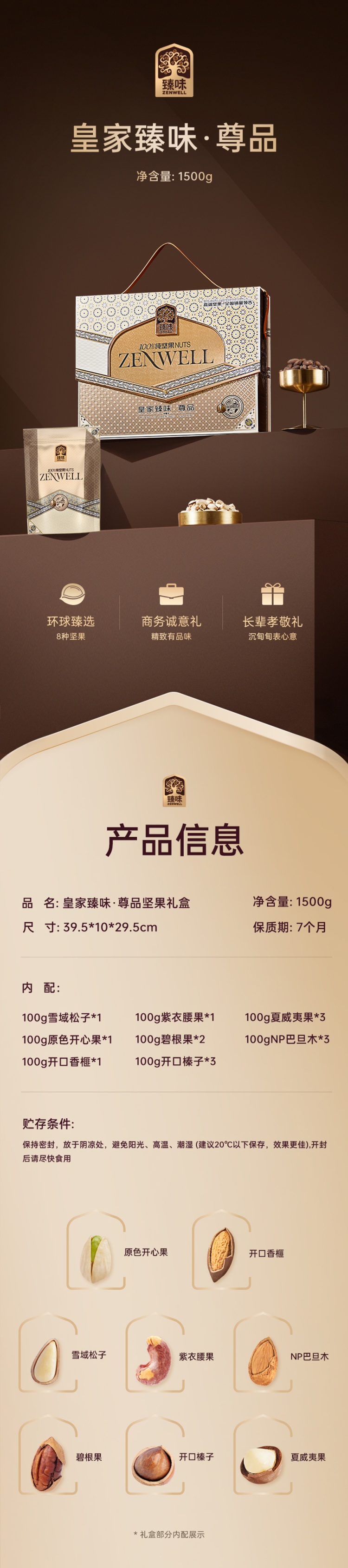 【河南省上蔡县】【臻味】皇家臻味尊品坚果礼盒1500g/盒休闲食品包邮