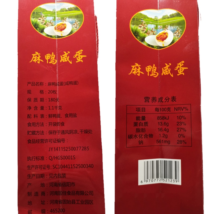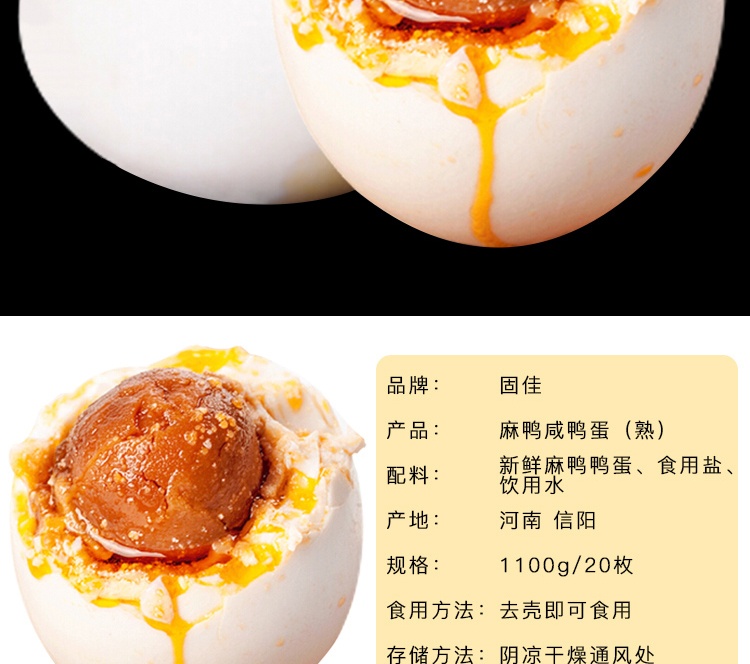 【国机 河南固始县】固始麻鸭咸蛋20枚礼盒
