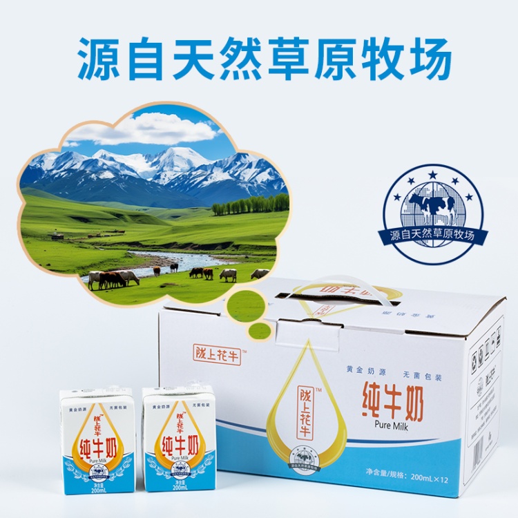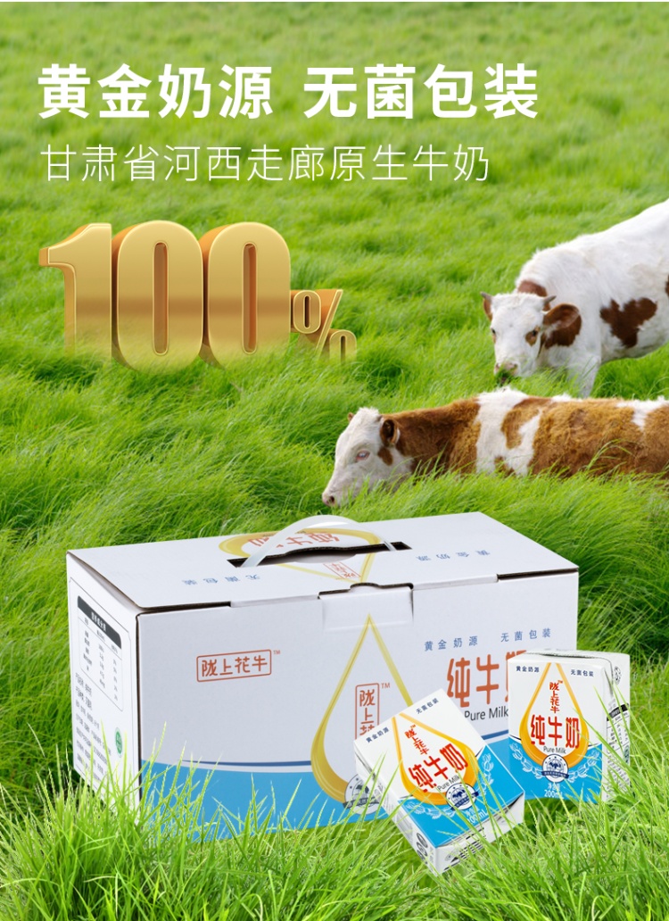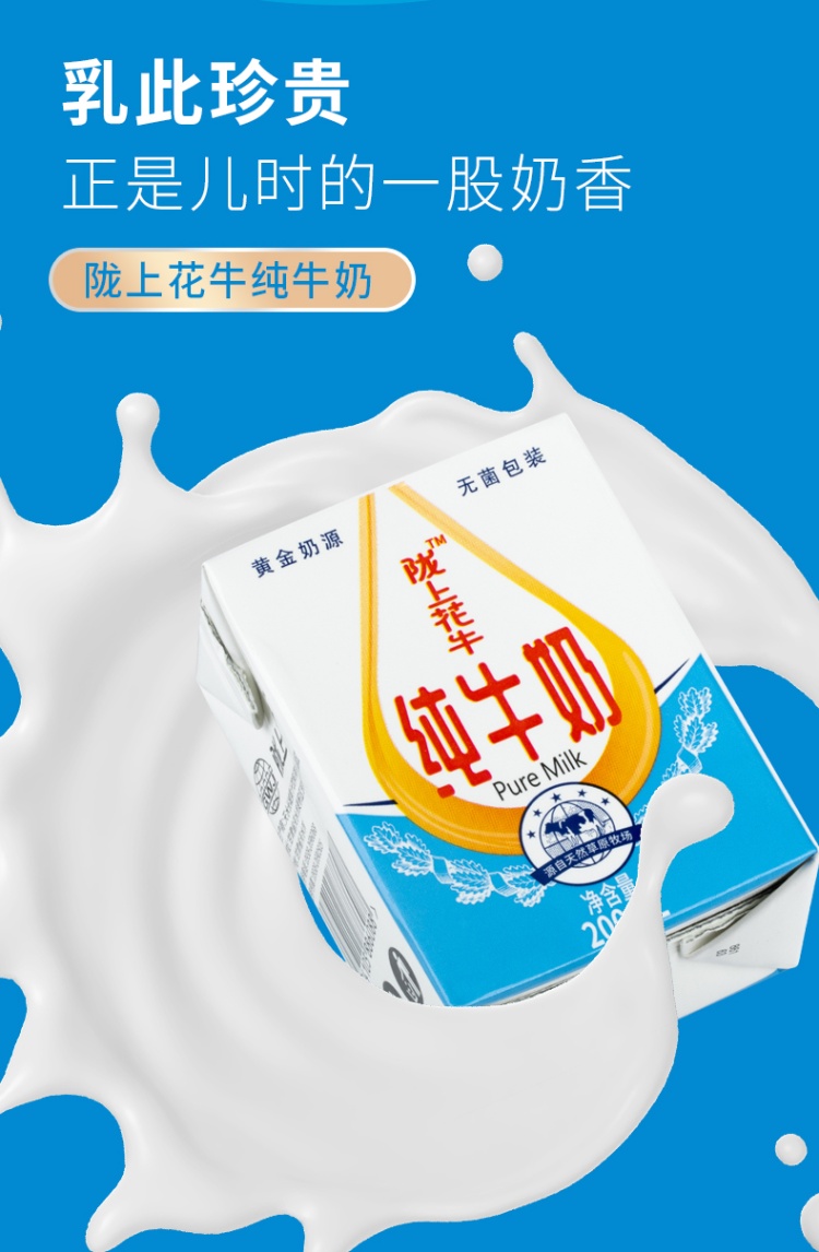 【甘肃麦积区】陇上花牛纯牛奶200ml*12盒/箱 营养早餐牛奶
