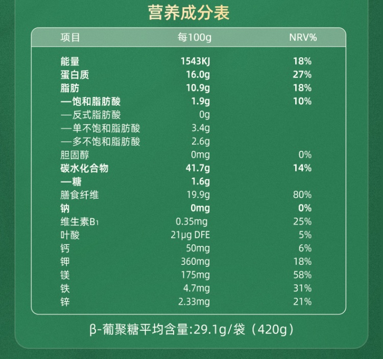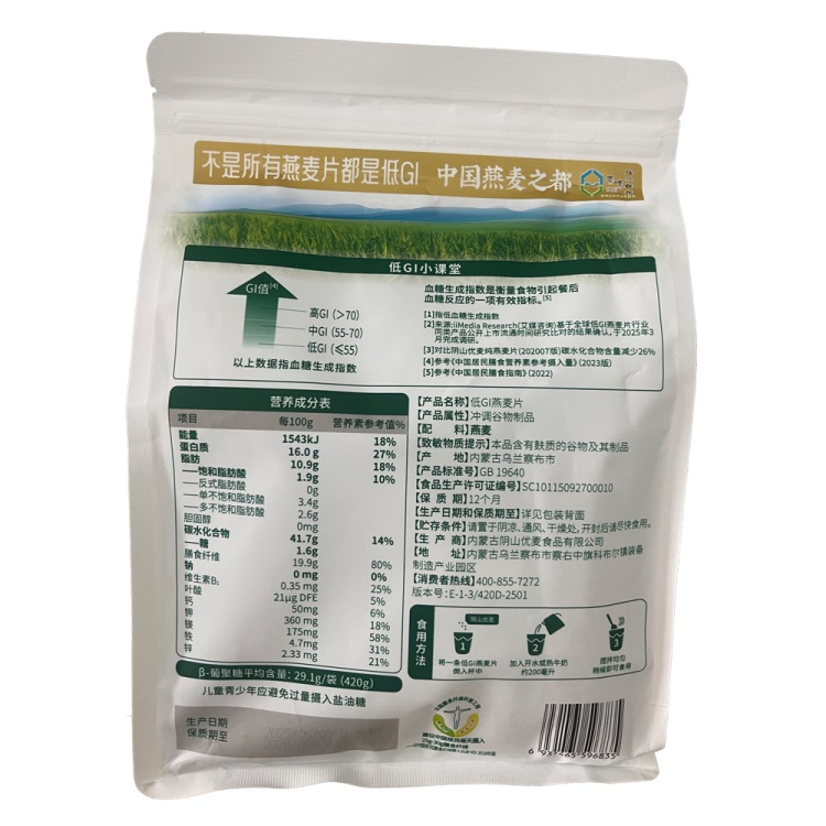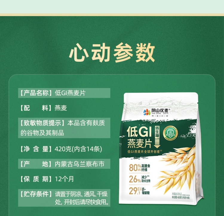 【内蒙古察右中旗】低GI燕麦片420克(内含14条)