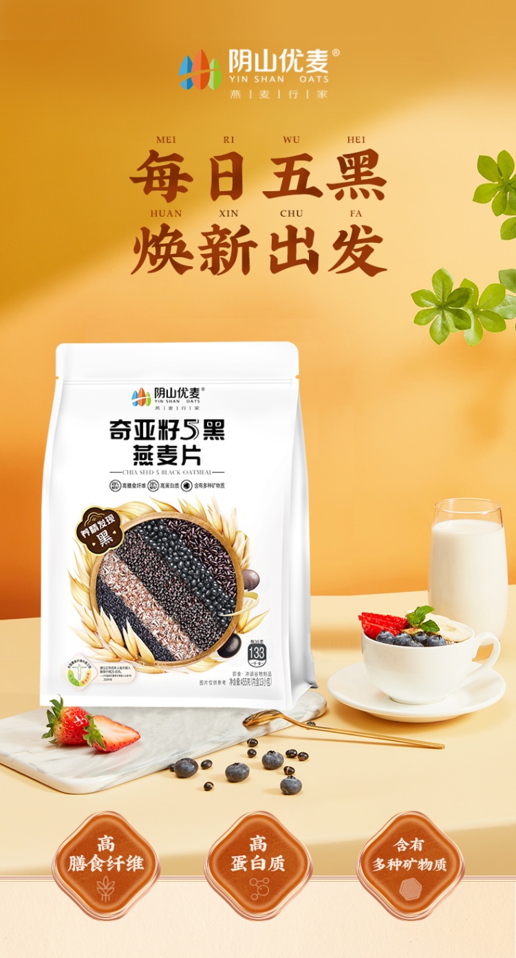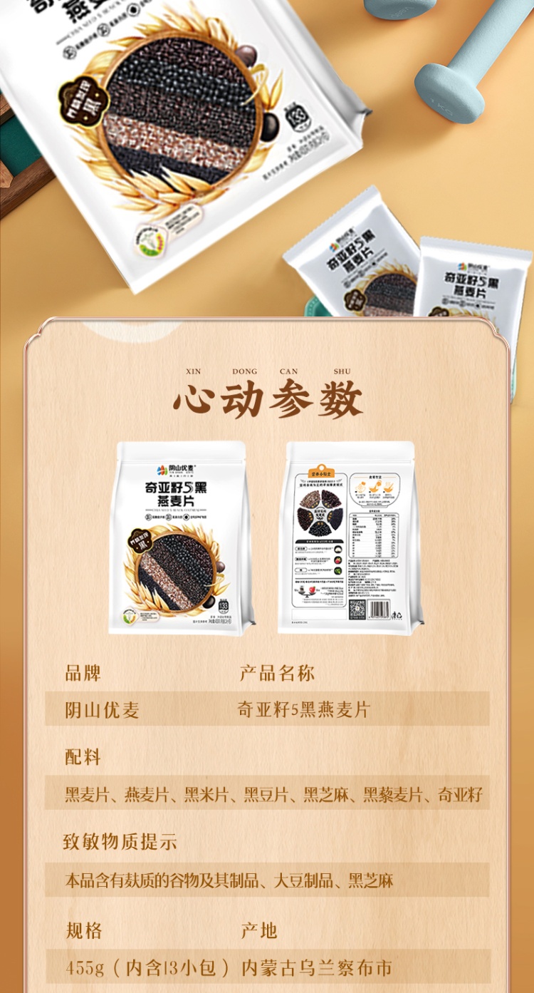 【内蒙古察右中旗】阴山优麦奇亚籽5黑纯燕麦片455克