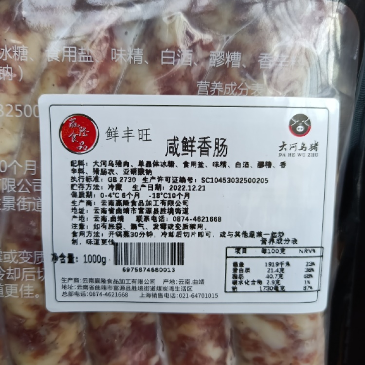 【云南富源县】大河乌猪咸鲜香肠1000g