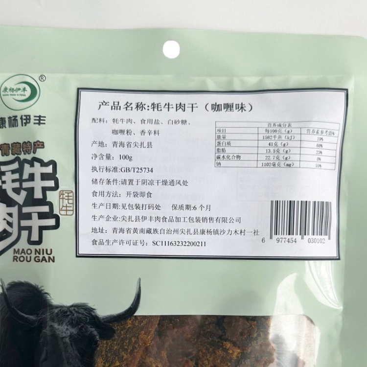 【青海尖扎县】伊丰牦牛肉干咖喱味100g/袋