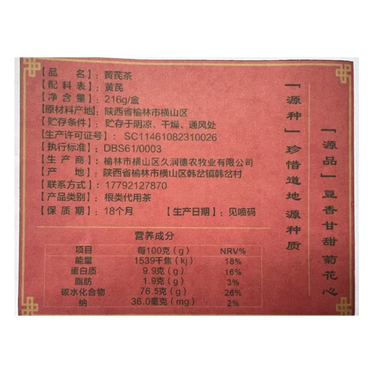 【陕西横山区】横山久润德小罐黄芪茶216g/盒