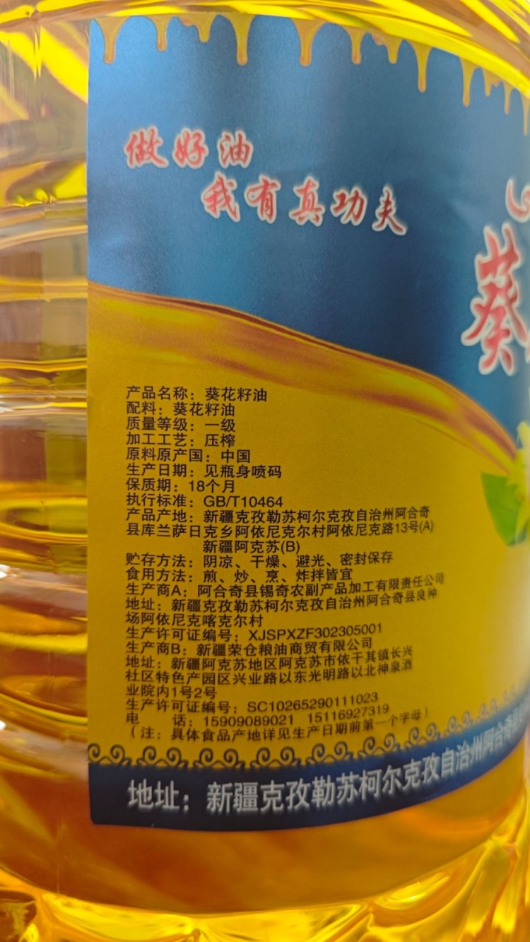 【新疆阿合奇县】阿合奇县葵花籽油/5L