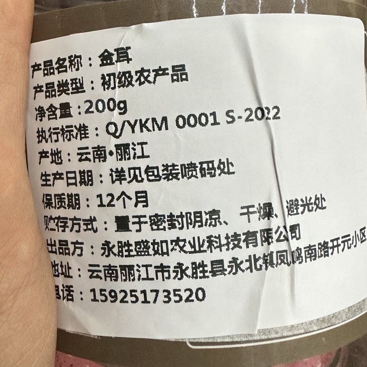 【永胜县】云南丽江高原特色山珍金耳200g/瓶