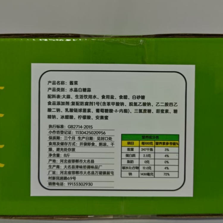 【大名县】农家酱菜下饭菜咸菜水晶白糖蒜(食堂工会)8斤/箱