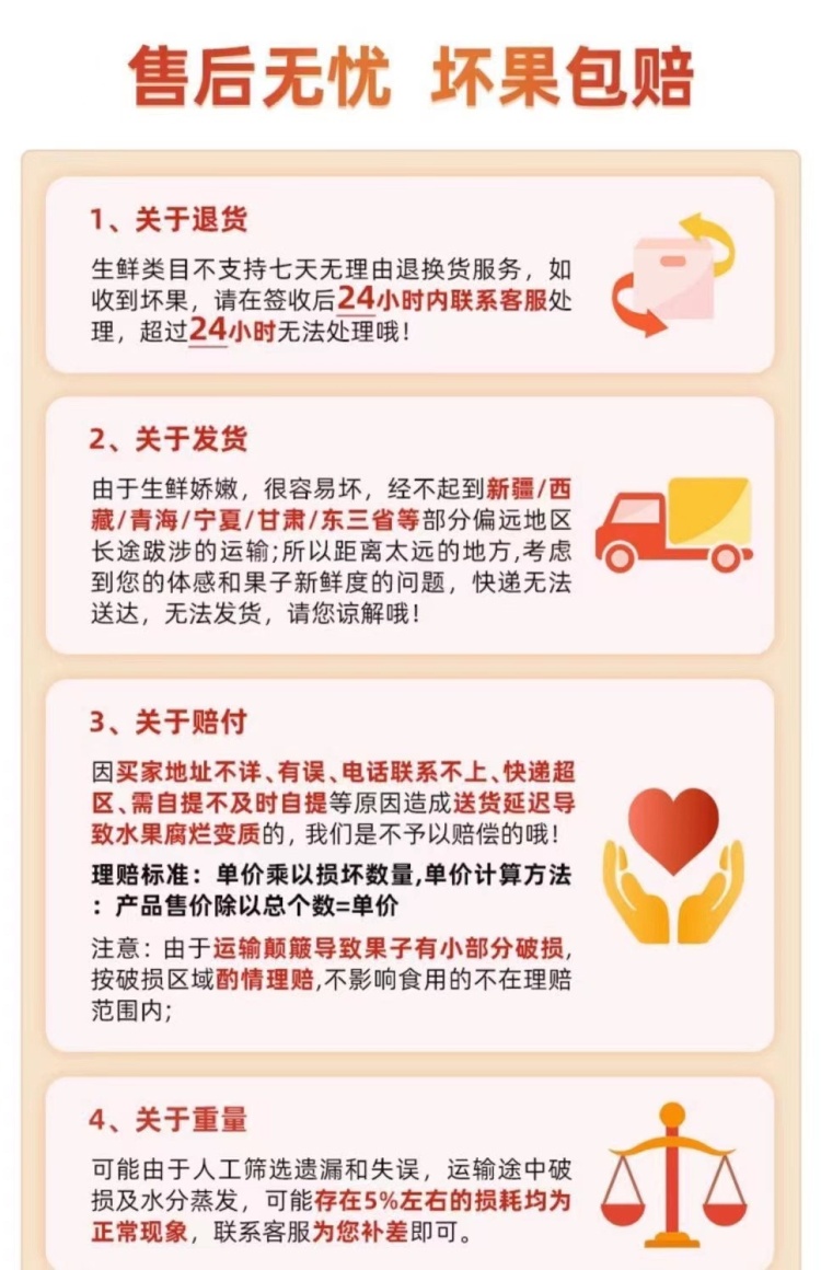 为了让您购物更加放心,我们特别提供无忧退换保障。在您签收商品后的7天内,只要商品保持完好且不影响二次销售,可以随时申请退换货(*生鲜不接受7天无理由退换)。