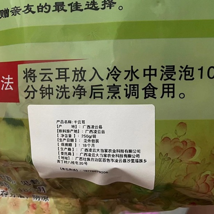 【凌云县】软滑脆口云耳黑木耳小木耳广西特产250g/袋