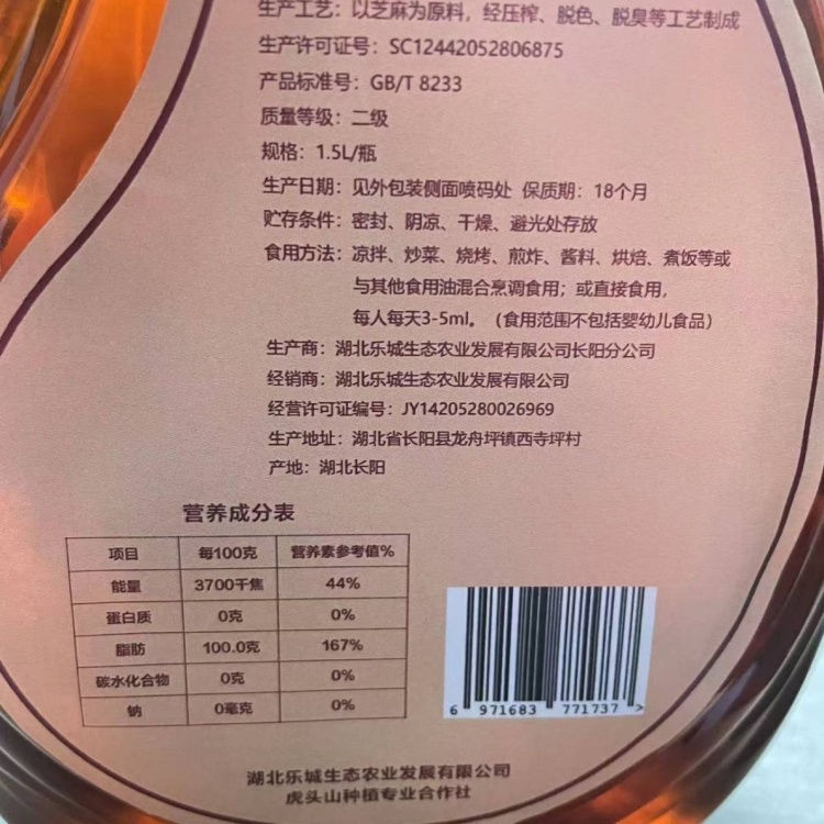【国家电网 长阳土家族自治县】长阳县虎头山老乡亲香油(芝麻油)1500ML