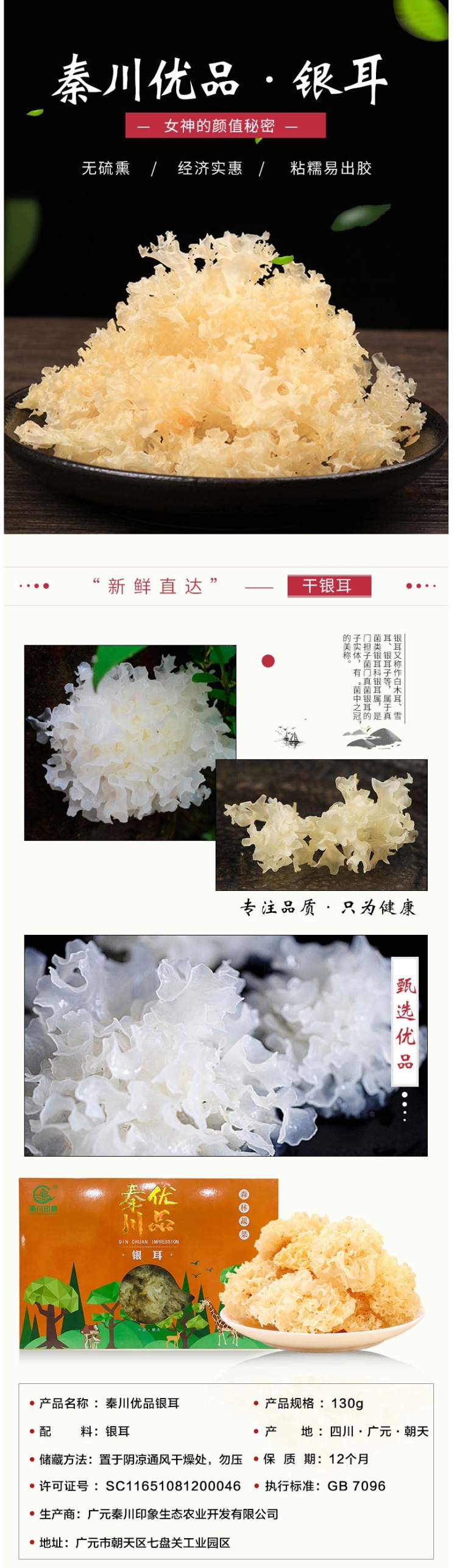 【国机集团 朝天区】秦川优品银耳食用菌干货特产130g