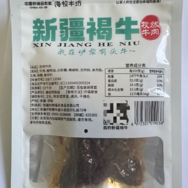 【中国石油 察布查尔锡伯自治县】海牧牛坊50克孜然牛肉干